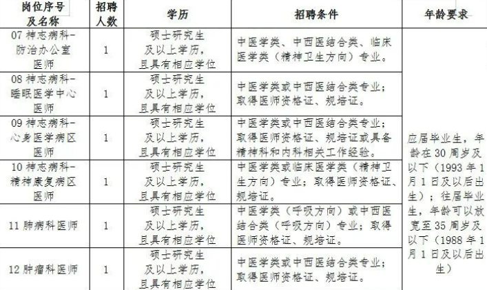 十堰市中医医院现有国家第五批、第六批、第七批老中医药专家传承工作指导老师 3 名,省级名中医 5 名,市级名中医 10 名,院级名医 20 名。先后创办了在本地区独具影响力和特色的重点专科 12 个,有国家级重点专科 2 个:精神病专科、肝病专科;省级重点专科 4 个:风湿病专科、心血管专科、脾胃病科、针灸科。据医院发展需要,现面向社会公开招聘工作人员。现将有关事项公告如下: