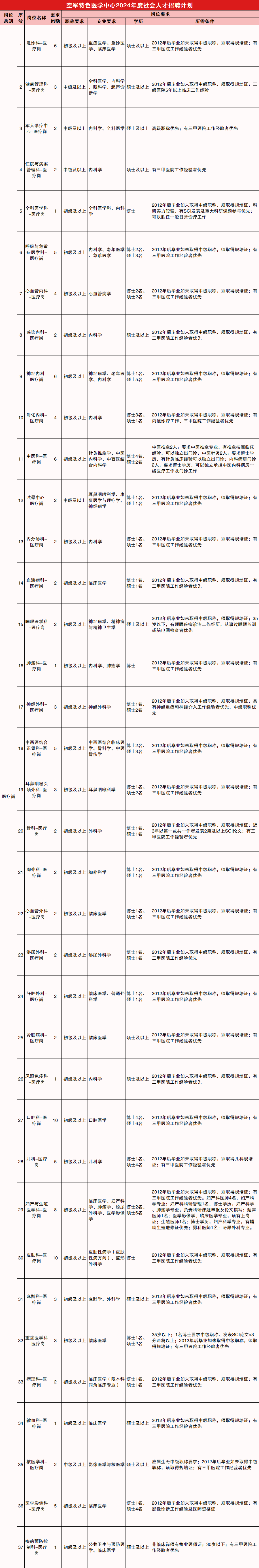 招 399 人 | 中国人民解放军空军特色医学中心医技护勤均有岗