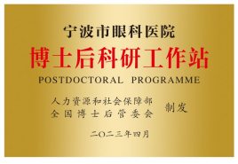 宁波市眼科医院博士后工作站是宁波市眼科医院 2020 年 6 月建立的浙江省博士后工作站。2023 年 4 月,经全国博士后管理委员会办公室批准,科研工作站正式升级成为国家级博士后科研工作站。宁波市眼科医院博士后工作站自建站以来已成功引进 7 名博士后,出站优秀博士后优先录用为在编人员,目前 2 名博士后获得国家自然科学基金资助项目,科研成果较显著。