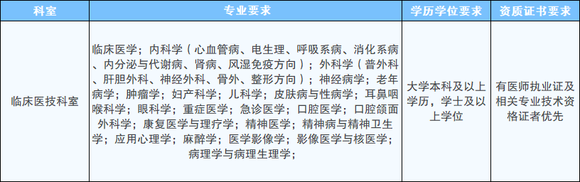 年龄要求:年龄不超过 40 周岁;有二甲及以上医院工作经历,经验丰富者可适当放宽;