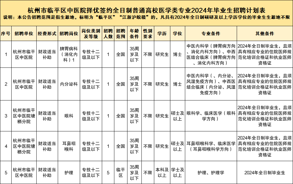 采用网上报名和现场报名相结合的形式。应聘者通过电子邮件向招聘单位电子邮箱:lpqzyyzp@linping.gov.cn 发送报名表(点击下载>>附件 2:杭州市临平区医疗卫生单位择优签约全日制普通高校医学类专业 2024 年毕业生报名表),邮件主题请注明「招聘单位+招聘岗位+姓名」,并提供相关的电子佐证材料,招聘单位根据招聘岗位所需条件进行资格初审,通过电子邮件或电话向应聘人员反馈初审结果。现场报名须携带相关材料到招聘单位进行报名和资料审核(网上报名初审通过人员参加考试前须携带相关材料到招聘单位进行现场审核)。