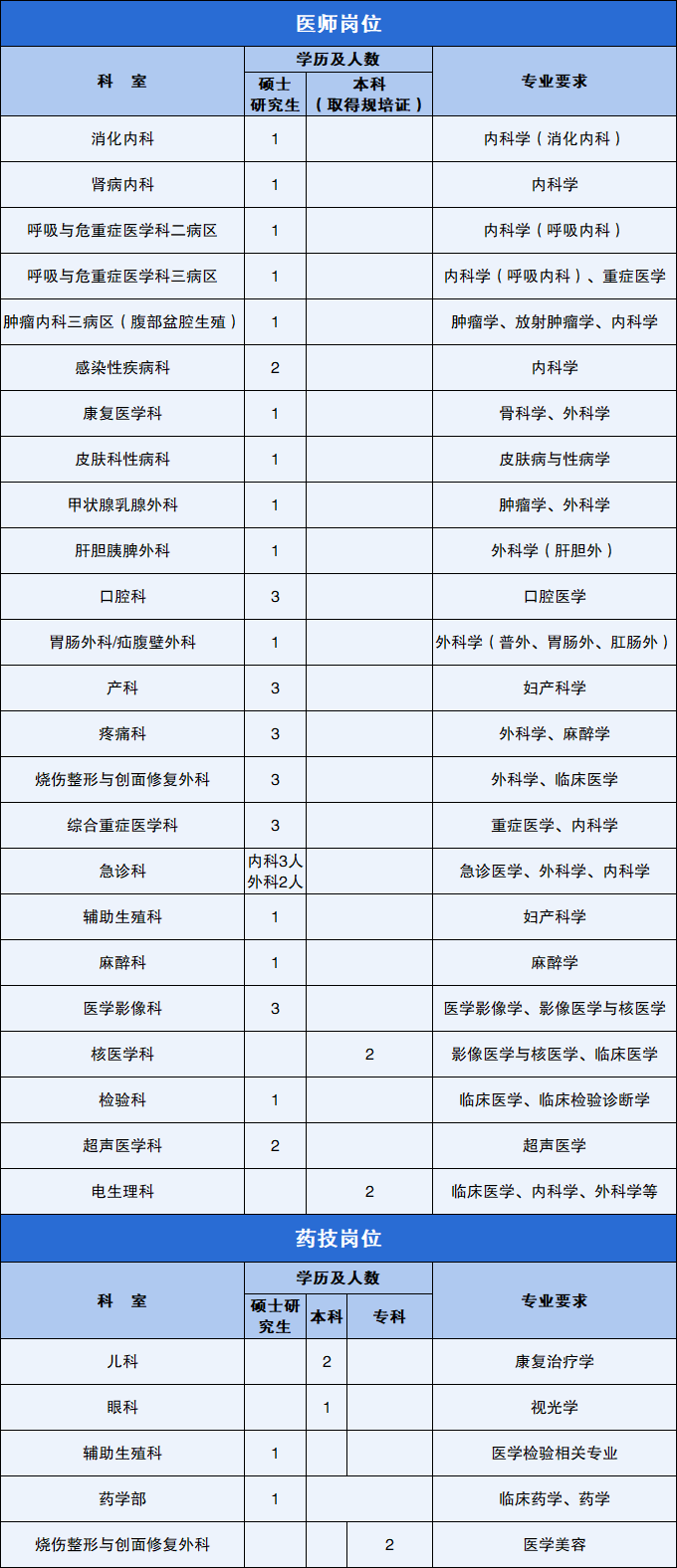 部分岗位入编 医技均有岗 | 国家公立三甲综合医院招聘