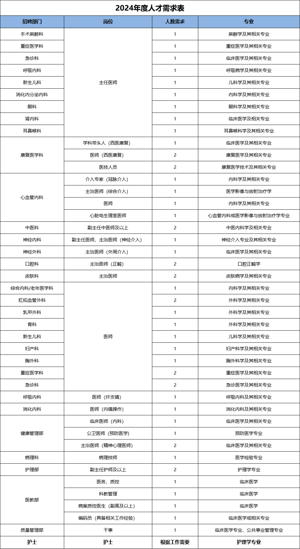 医院招聘需求
