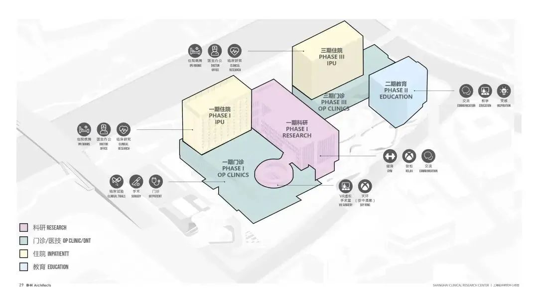 中心按照三级综合医院进行规划建设,主要聚焦肿瘤和神经系统疾病, 兼顾泛血管疾病、呼吸系统疾病、风湿免疫及肌肉骨骼疾病、感官系统疾病等重大疾病。初期设 500 张床位,其中 200 张为核定床位 300 张为研究型床位。未来根据发展需求, 适时发展为 1,000 张床位。