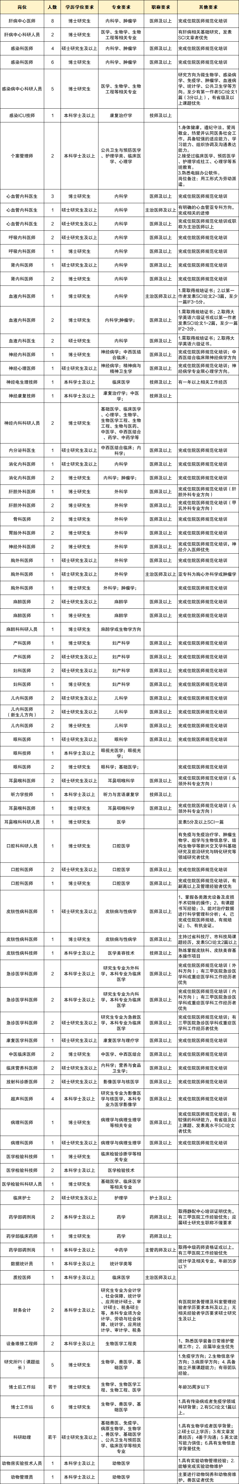 1、院内紧缺岗位:超声科医师岗位、病理科医师岗位、麻醉科医师岗位、急诊科医师岗位;