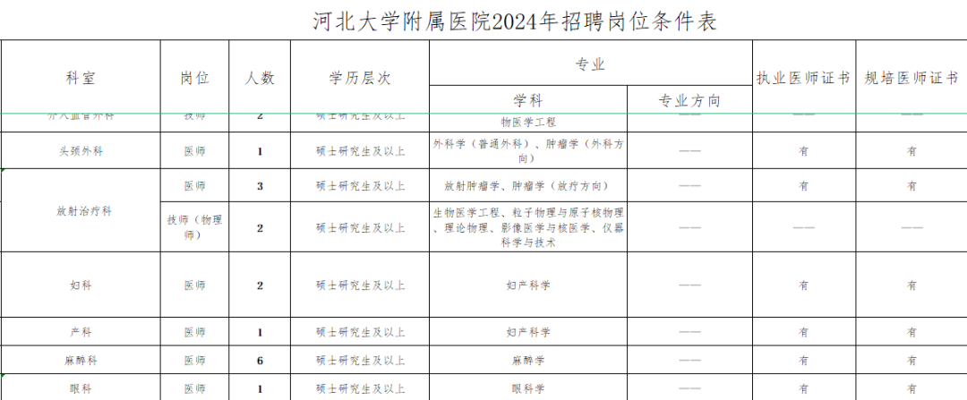 根据医院机构设置调整及发展需要,我院现面向社会公开招聘临床医师、医技、行政工作人员 100 人。有关事项公告如下:点击查看完整招聘公告