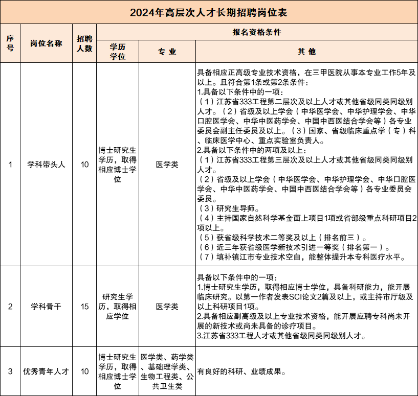 招聘公告及报名方式详见:镇江市第一人民医院官网