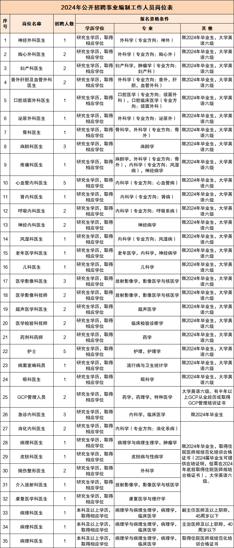 招百余人 事业编制 | 公立三甲医院发布 2024 年最新招聘信息