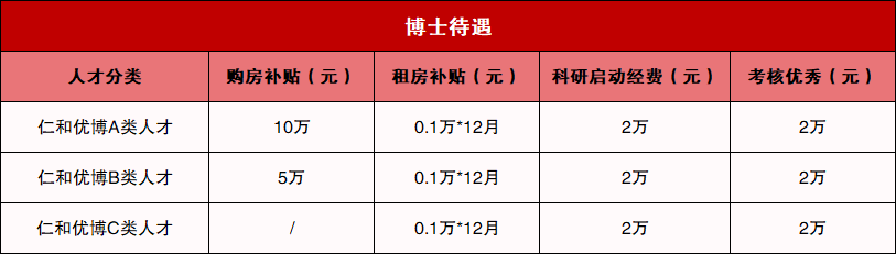 补贴:博士及高级职称人员提供人才引进待遇,如下