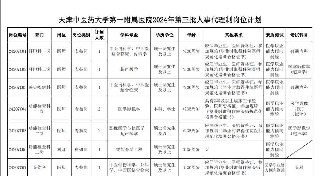 招 110 人!天津中医药大学第一附属医院 2024 年招聘