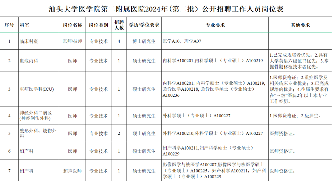 汕头大学医学院第二附属医院 2024 年公开招聘
