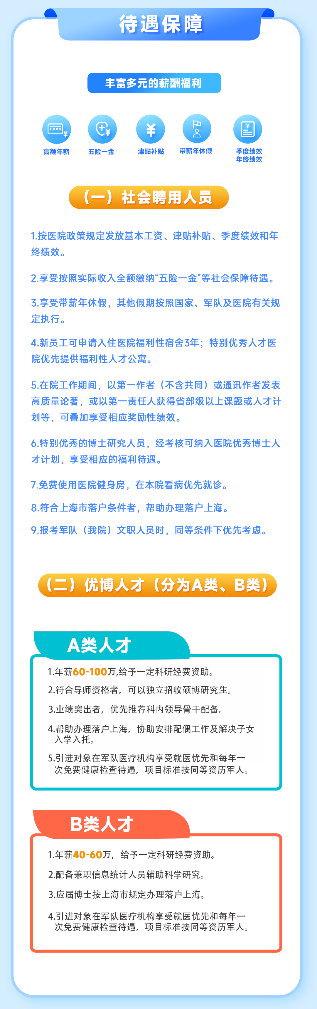 协助落户 福利宿舍 全额缴纳五险一金 | 海军军医大学第一附属医院年薪百万招聘人才