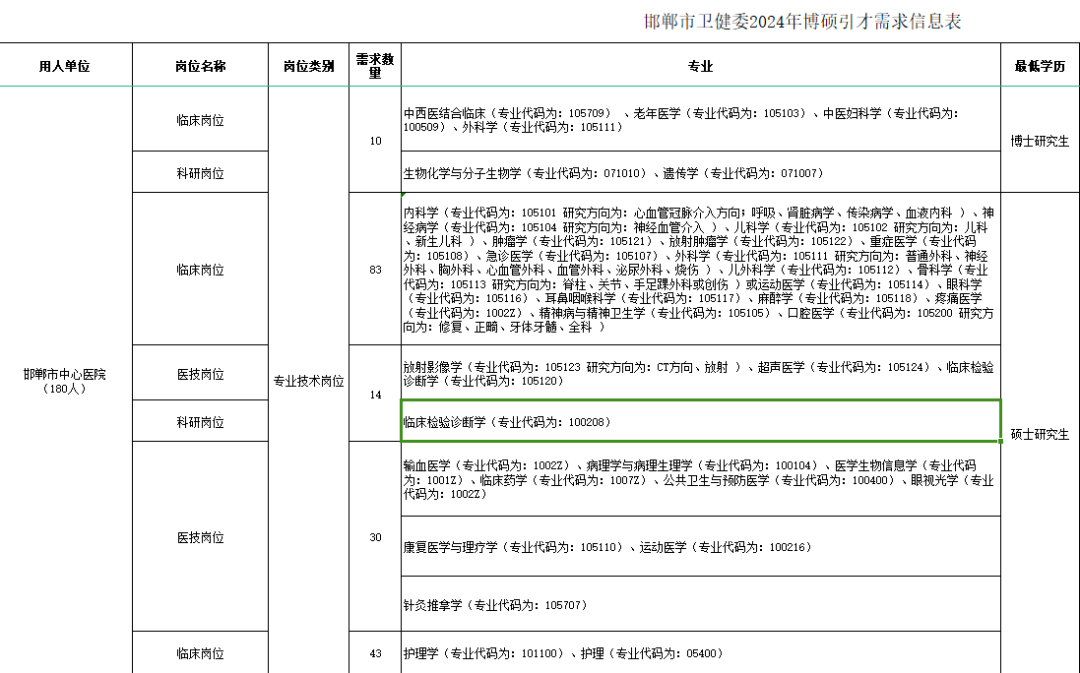 招 696 人!邯郸市卫生健康委员会 2024 年公开招聘