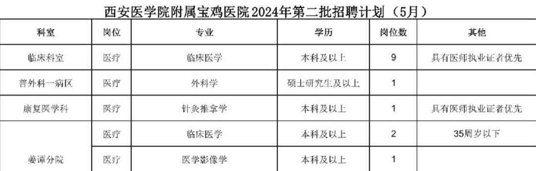 长期招聘!西安医学院附属宝鸡医院 2024 年公开招聘