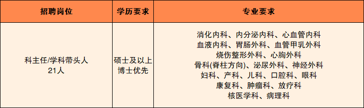 招聘岗位 PART. 1科主任/学科带头人(正式编制)