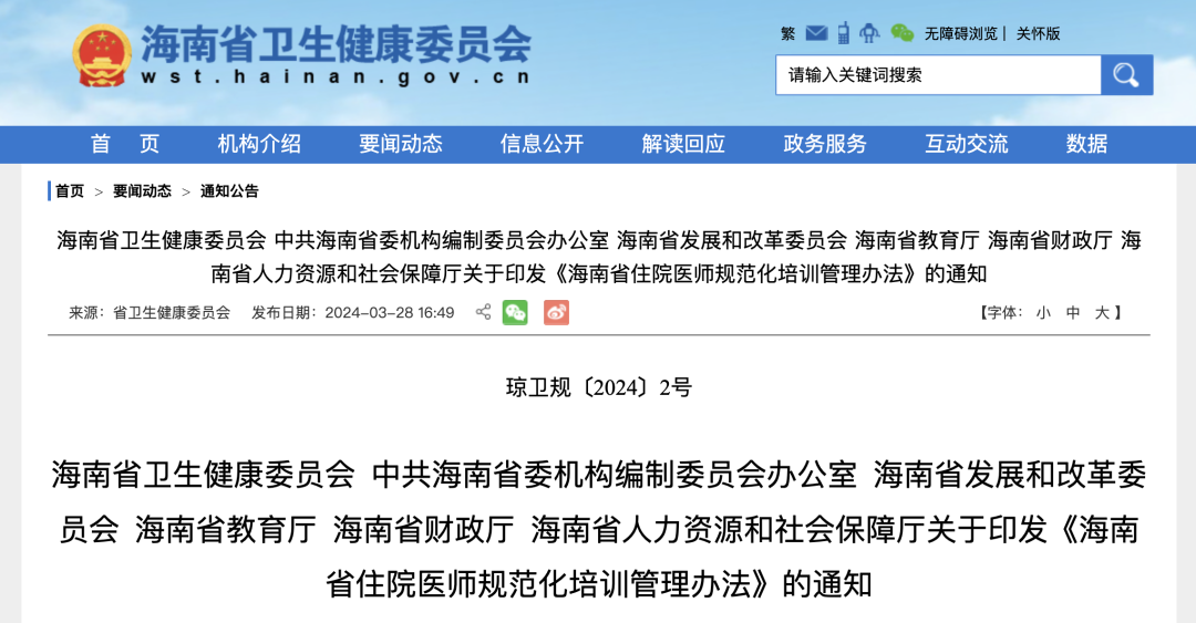 海南省卫健委今年 3 月新印发的《海南省住院医师规范化培训管理办法》(以下简称《办法》)中,也提到了「全省所有新进医疗岗位(包括乡镇卫生院、社区医院、民营医院等)的本科及以上学历临床医师均应当接受住院医师规范化培训」。