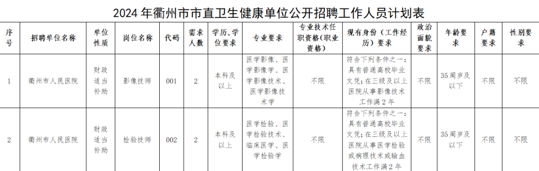 招 64 人!衢州市市直卫生健康单位 2024 年公开招聘