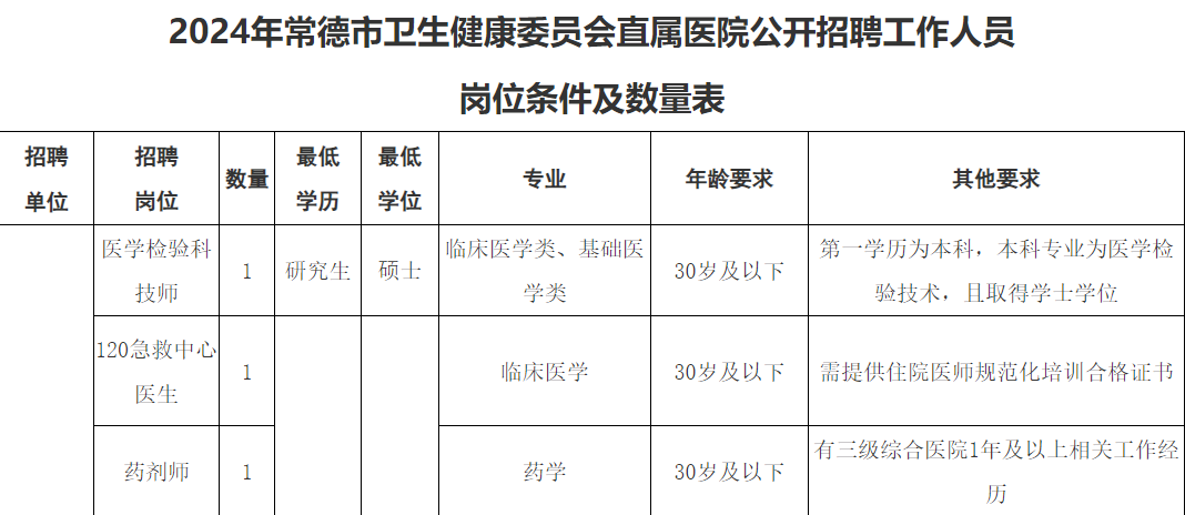招 86 人!常德市卫生健康委员会 2024 年公开招聘