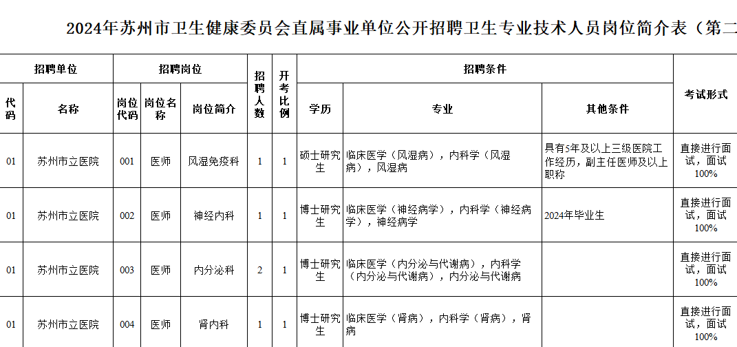 有编制!苏州市卫生健康委员会直属事业单位 2024 年公开招聘