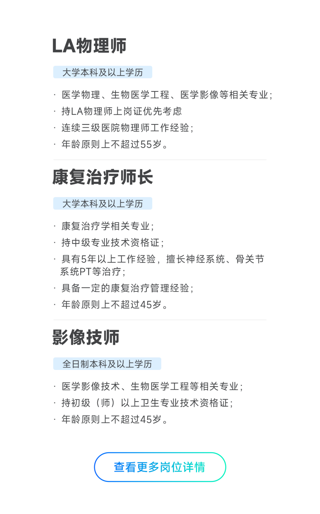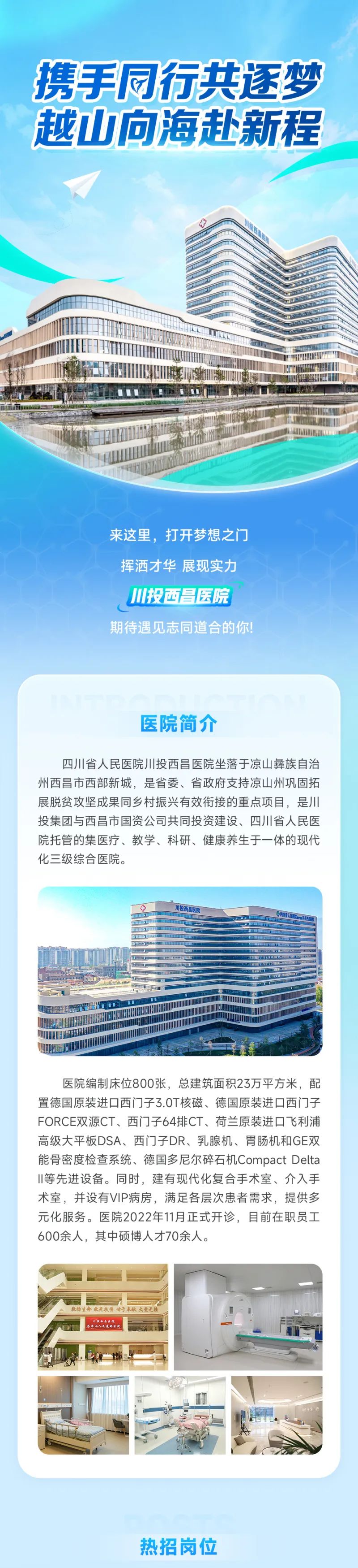 有编制 提供餐补、通讯、交通等补贴 福利待遇齐全 | 国资三级医院诚聘英才日期:2024-07-02 来源:丁香人才公众号 川投西昌医院 邀您加入 应聘 ······· 图片来源:川投西昌医院 微信扫一扫分享资讯上一篇:提供住宿!海医大三院 2024 年公开招聘下一篇:招 300 人!海淀区卫健委所属事业单位 2024 年公开招聘