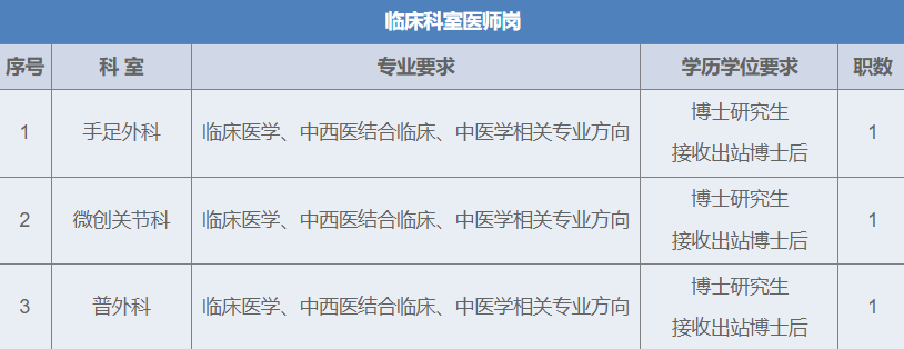 本次招收岗位有临床科室医师岗、平台科室医师岗、技师岗位和护理岗位,其中临床科室医师岗招 10 人,平台科室医师岗和技师岗位各招 1 人,护理岗位招 22 人。