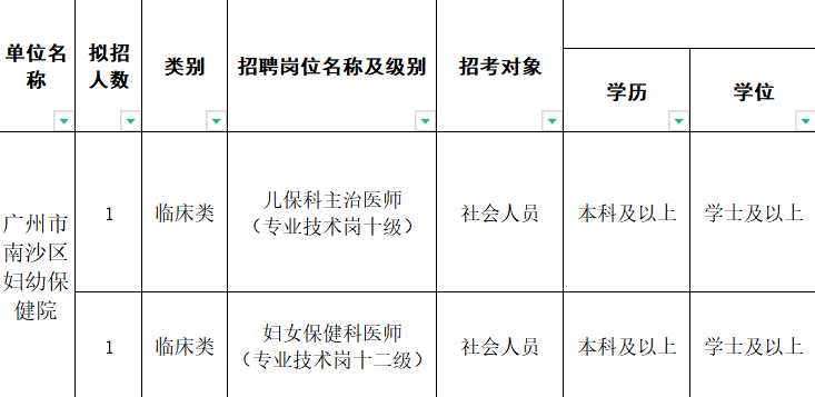 事业编制 | 广州市南沙区区属公立医院 2024 年公开招聘
