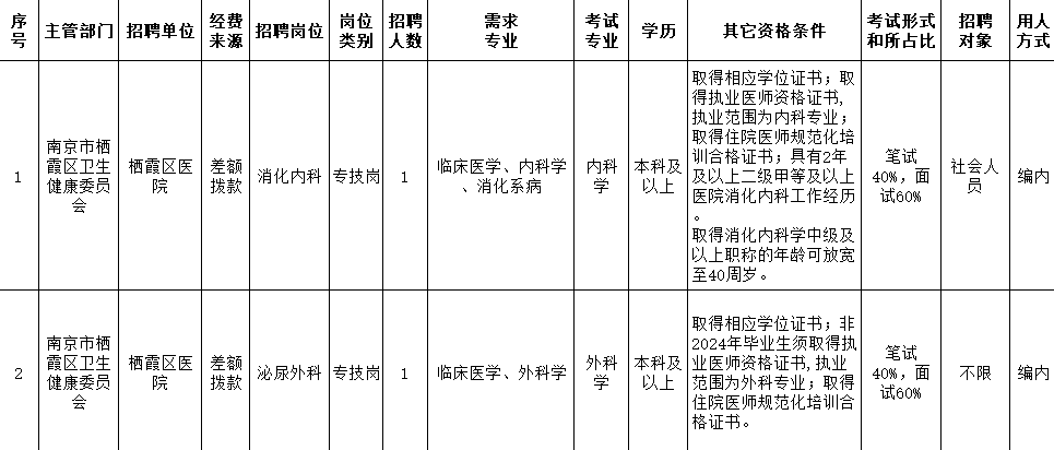 部分有编 | 南京市栖霞区卫健委所属事业单位 2024 年公开招聘