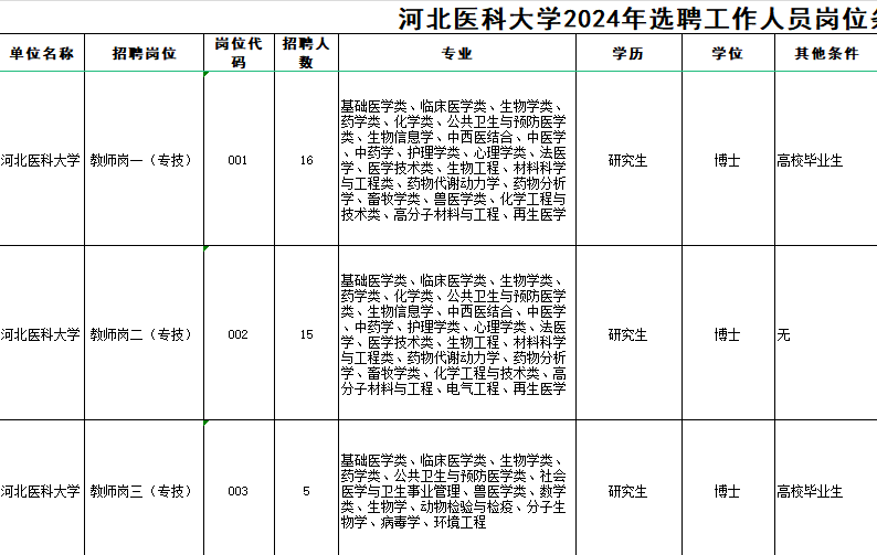 教师有编制 | 河北医科大学 2024 年公开招聘