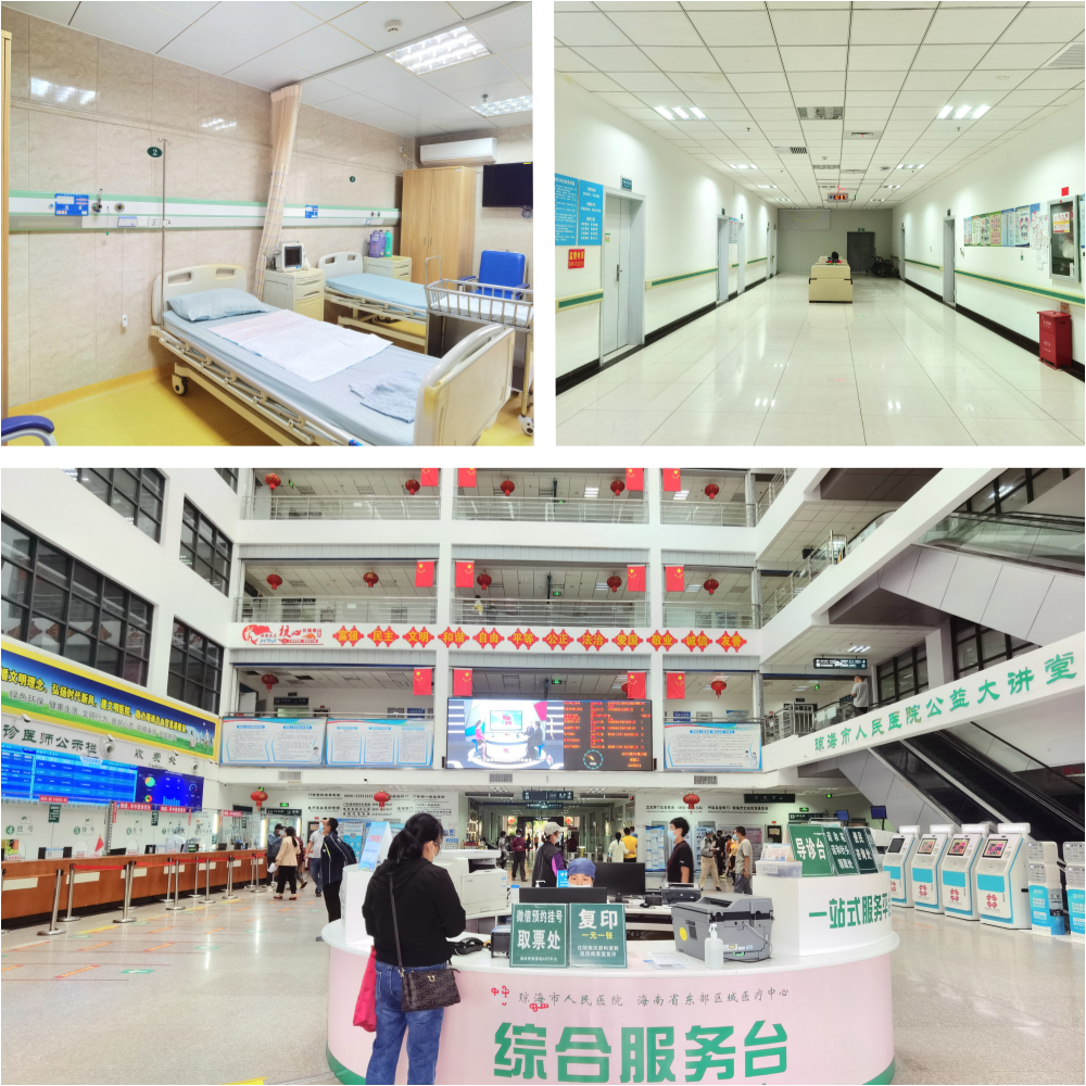 琼海市人民医院位于海南省东部中心城市琼海市。医院始建于 1907 年,是一所环境优美,学科齐全,以急诊急救专业为龙头,以危重病专业为重点,以微创技术为特色的三级甲等综合医院。