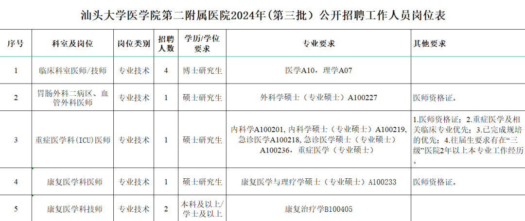 本科起投 | 汕头大学医学院第二附属医院 2024 年公开招聘
