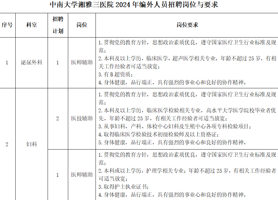 招 24 人!中南大学湘雅三医院 2024 年公开招聘
