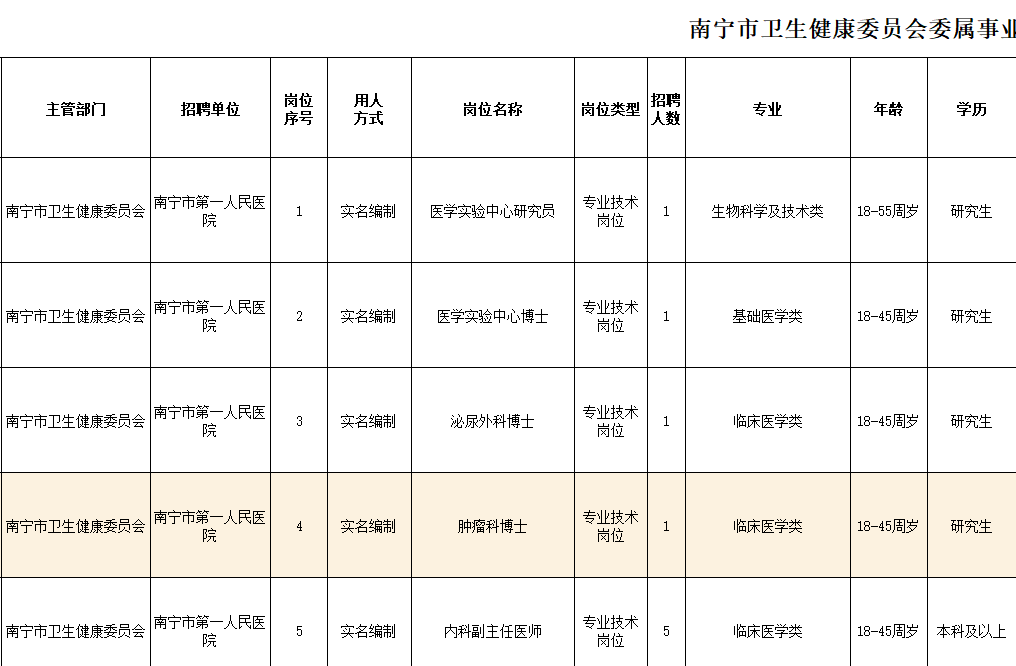招 187 人!南宁市卫健委属事业单位 2024 年公开招聘