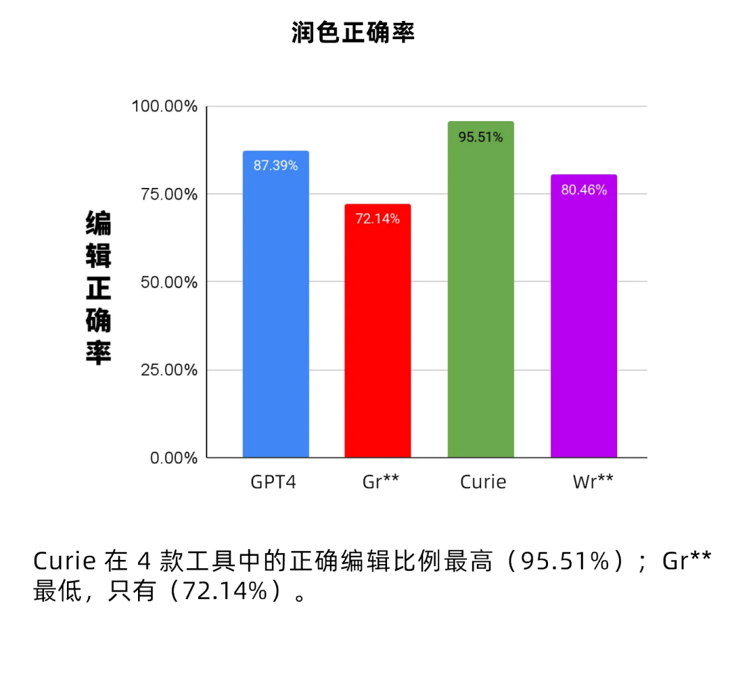 Curie 作为一款专为学术论文设计的人工智能写作助手,具有准确性、保持原意和专为学术打造等特点。升级后的新版本 Curie 平均多了 65% 的修改建议。可以和 Word 无缝衔接,作为 Word 的插件,实现边写作边翻译和润色。当前市场上充斥着各种由人工智能驱动的润色工具,与其他润色工具相比,Curie 的效果如何?