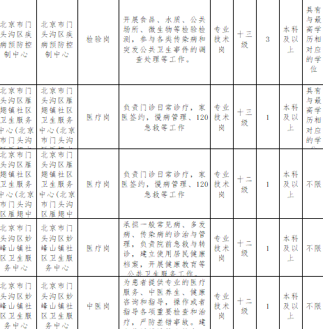 招 114 名!北京市门头沟区卫生健康系统事业单位 2024 年公开招聘