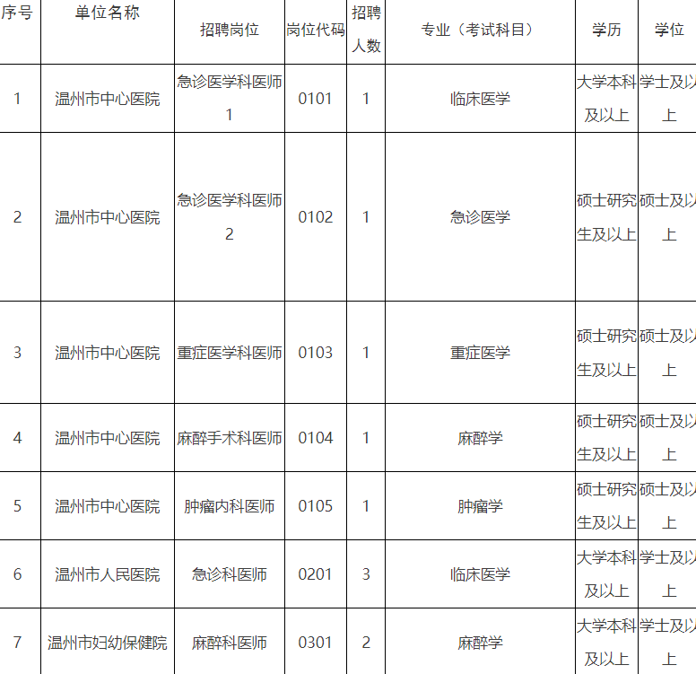招 50 名!温州市卫生健康委员会 2024 年公开招聘