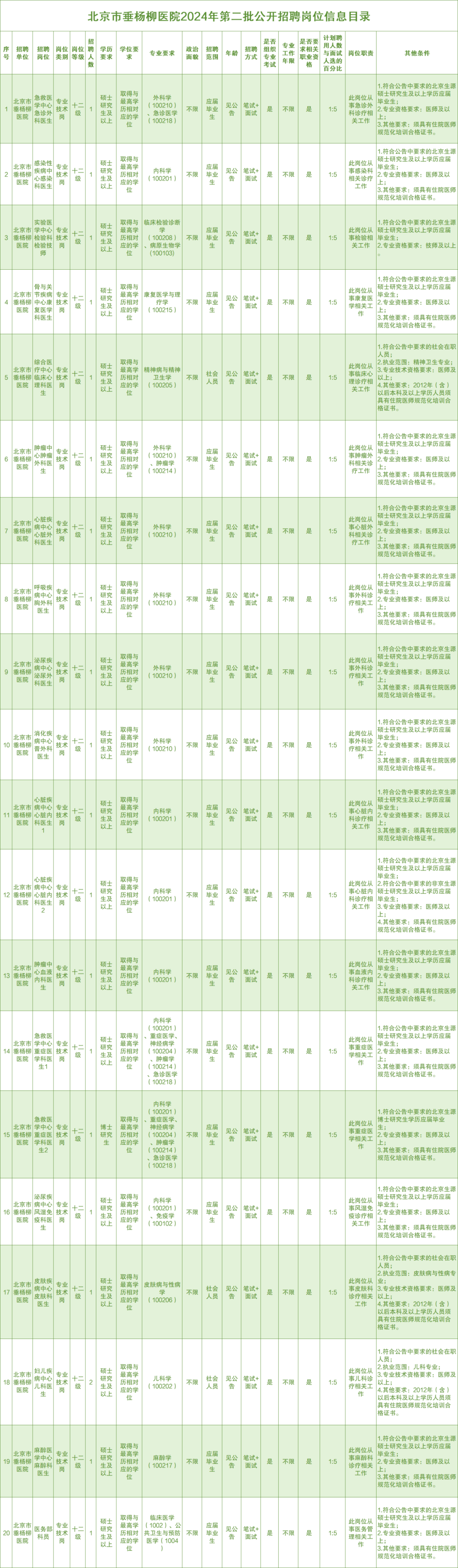 北京市垂杨柳医院成立于 1973 年,是北京市朝阳区政府举办的集医疗、教学、科研、预防为一体的三级综合医院。根据医院需求,现将我院 2024 年第二批公开招聘相关事宜公告如下: