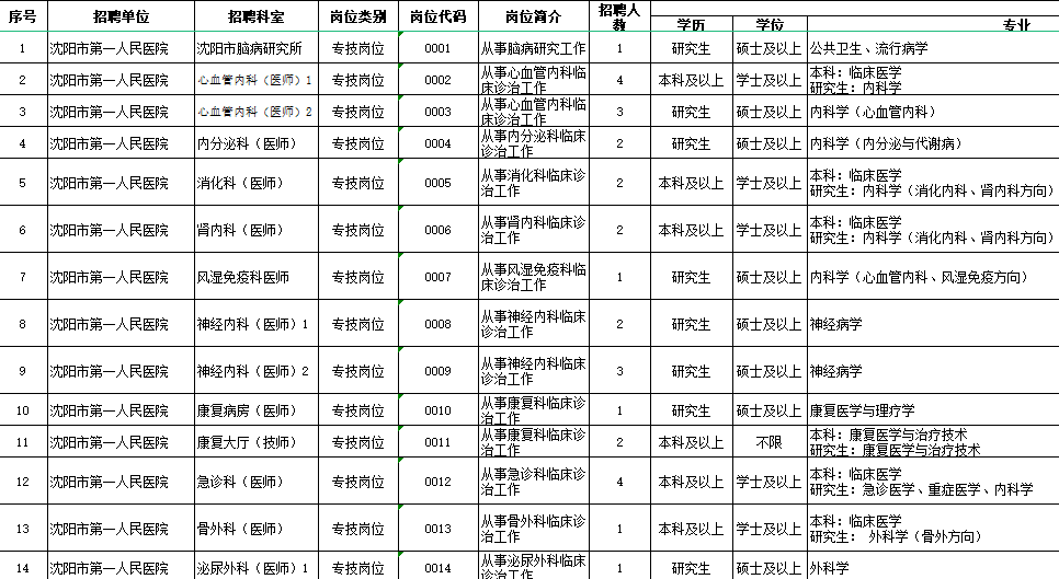 依据相关文件规定,经市人民政府批准,决定面向社会为沈阳市市级医疗卫生系统、区县(市)医疗卫生系统公开招聘工作人员。现将有关事项公告如下: 点击查看完整招聘公告