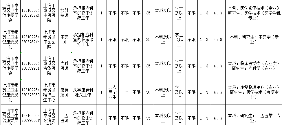 大专起投 | 上海市奉贤区卫生健康系统 2024 公开招聘