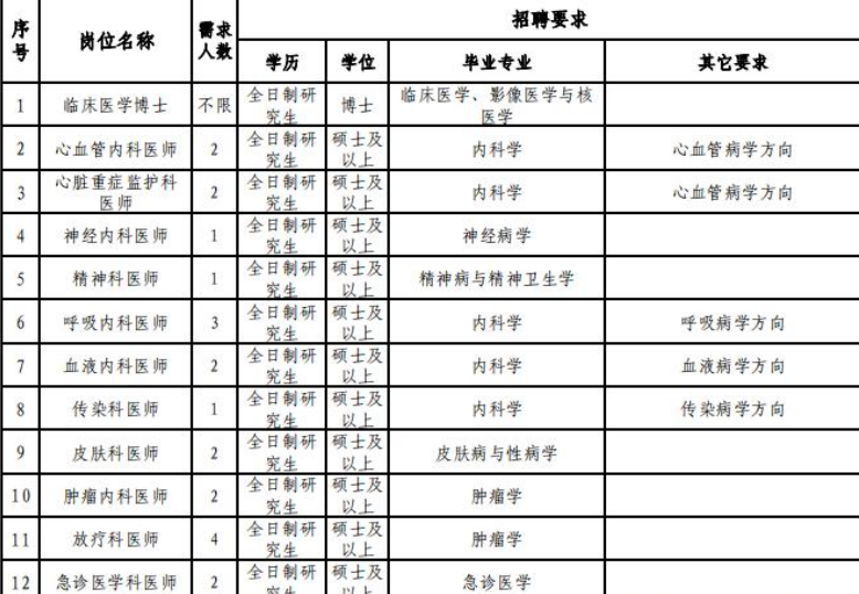 本次计划招聘工作人员 95 人,包括医师类、医技类、其他类岗位。具体岗位需求请点击下方链接。 点击查看完整招聘岗位