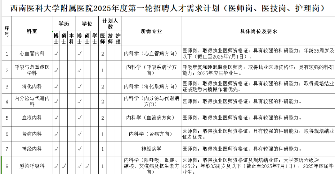 招 161 名!西南医科大学附属医院 2025 年公开招聘
