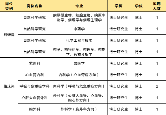 包括但不限于以上岗位,常年招聘医学类、科研类各专业博士以上高层次人才