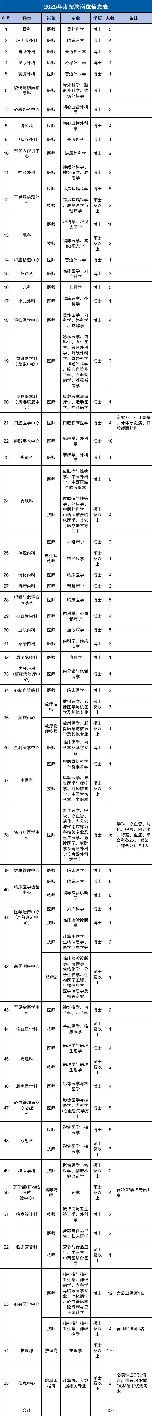 招 400 人 博士直接入编 | 全国一流三甲医院 2025 年度校园招聘启动