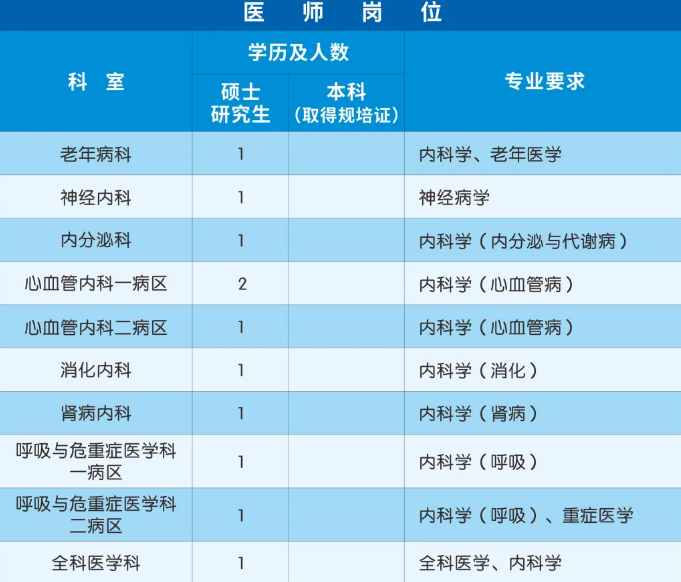 1. 高层次人才:长期招聘各临床医技科室高层次人才,人数不限