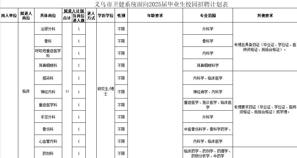 招 293 名!义乌市卫生健康系统 2025 年校园招聘