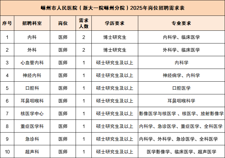 携手并肩前行 共创辉煌未来嵊州市人民医院招聘