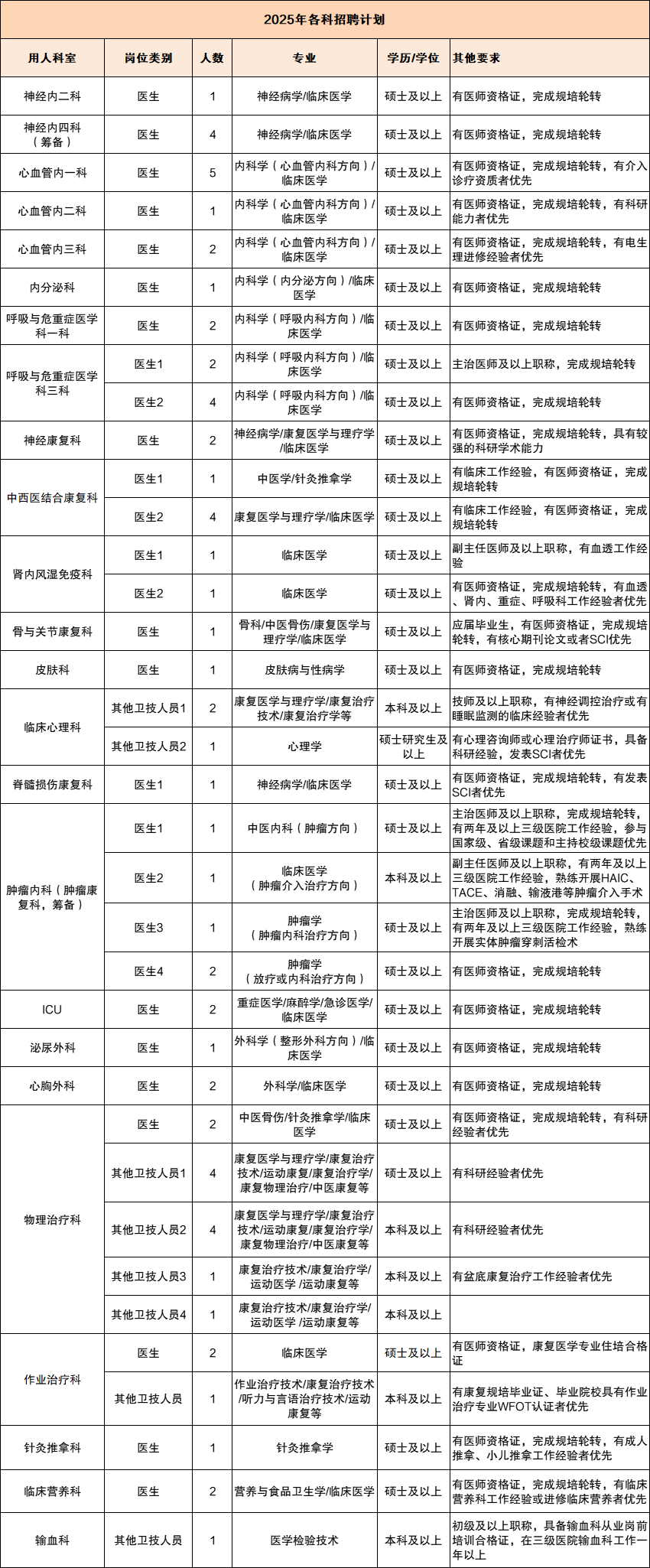 招 66 人 本科起聘 | 国家三甲医院发布 2025 年各科招聘计划