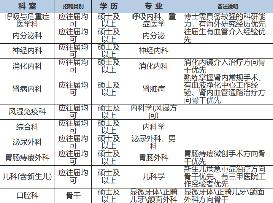 本次计划招聘工作人员若干名,包括学科医师、药师、医技、护理岗位。 具体招聘岗位及要求详见下方链接。