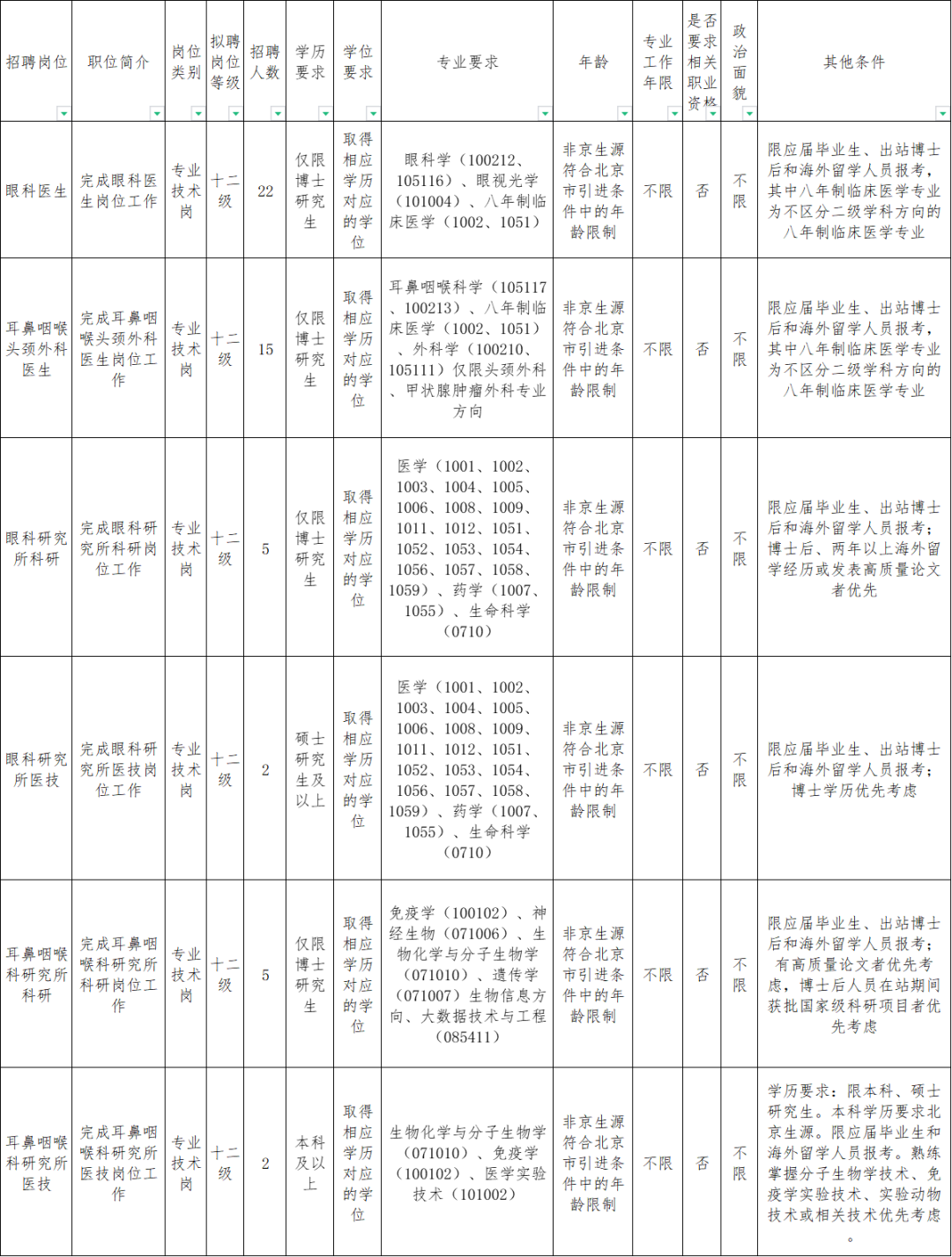 首都医科大学附属北京同仁医院是一所以眼科学、耳鼻咽喉科学为国家重点学科的大型综合三甲医院,现开展 2025 年度工作人员招聘计划。