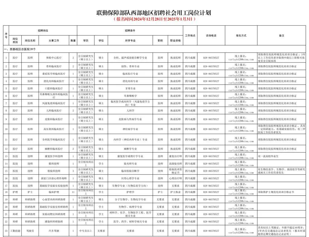 多岗招聘 39 人!中国人民解放军西部战区总医院 2024 年工作人员招聘