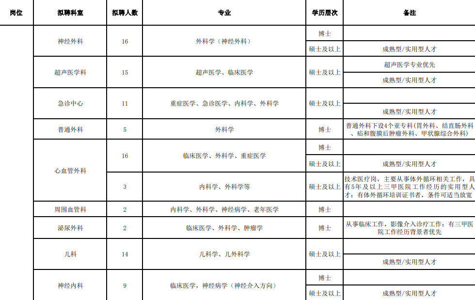 本次计划招聘工作人员若干名,包括医师、技师、科研人员、护理人员等岗位,详见下方链接。 点击查看完整招聘岗位